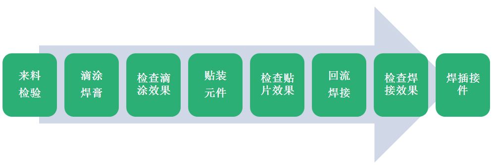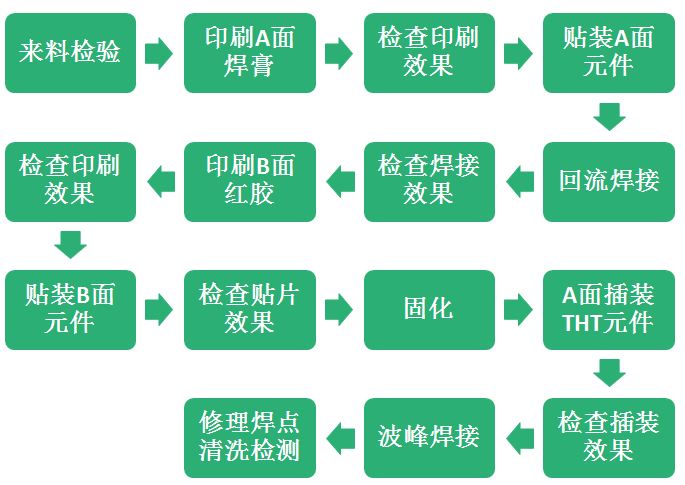 混裝板貼裝工藝流程如下: