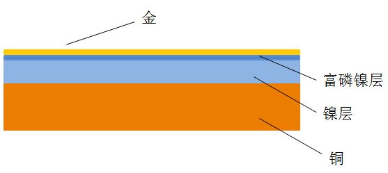化學(xué)鎳金,英文縮寫為ENIG,英文全稱為Electroless Nickel/Immersion Gold。ENIG的結(jié)構(gòu)如下圖: